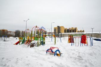 На территории спортивная и детская площадки.