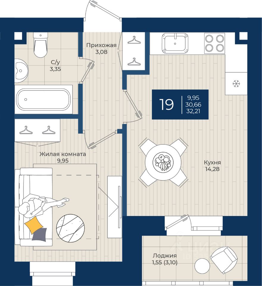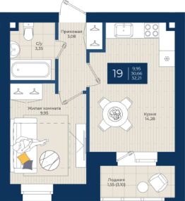 Общая площадь32,21 м²