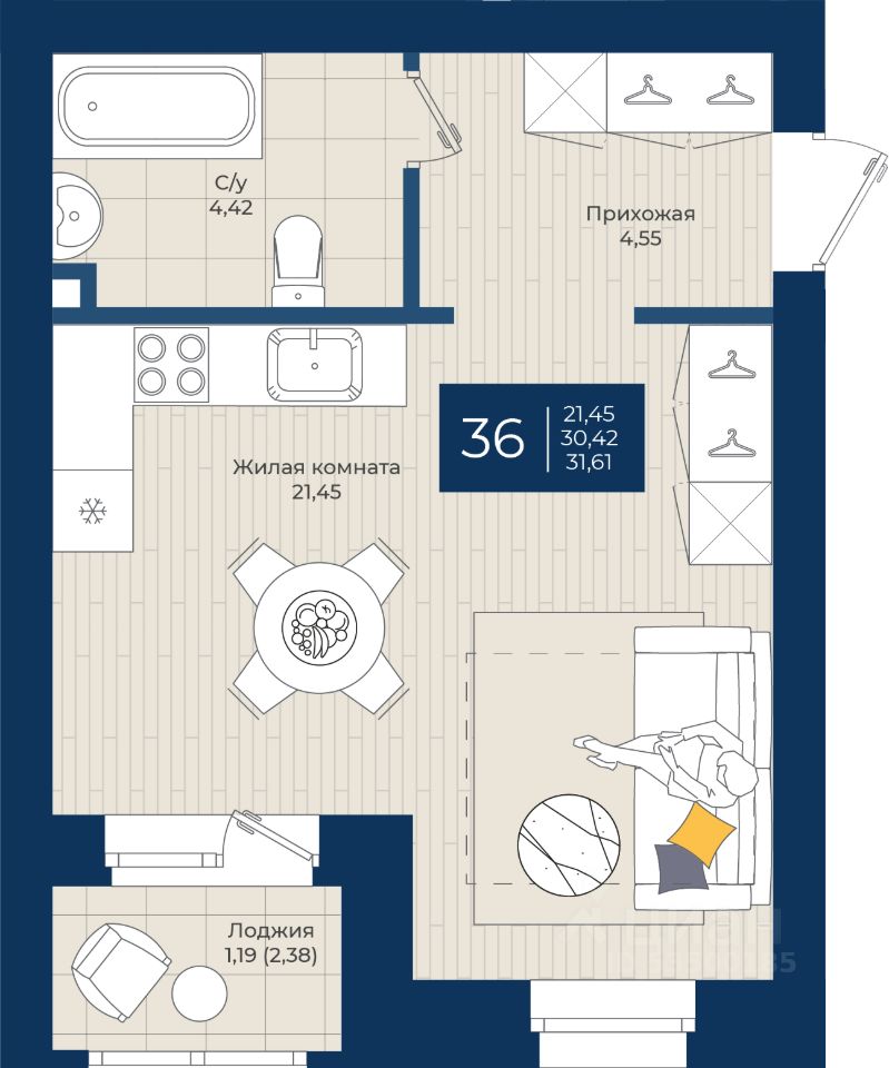 31,61 м²