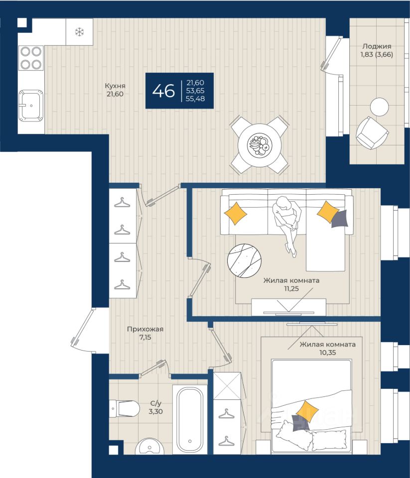Общая площадь55,48 м²