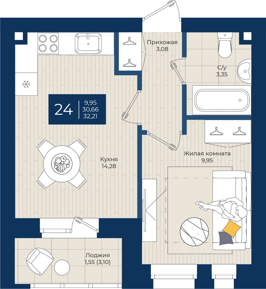 Общая площадь32,21 м²
