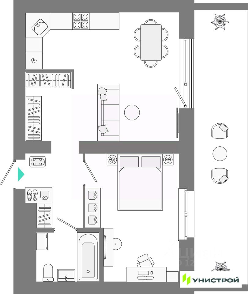 Представлен широкий выбор планировок — от студий до просторных семейных квартир. Доступны варианты с террасами, мастер-спальнями и гардеробными. Во всех квартирах выполнена качественная предчистовая отделка.