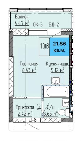 Студия на 18-м этаже Площадь 21,86 кв.м. в ЖК "Геометрия"
