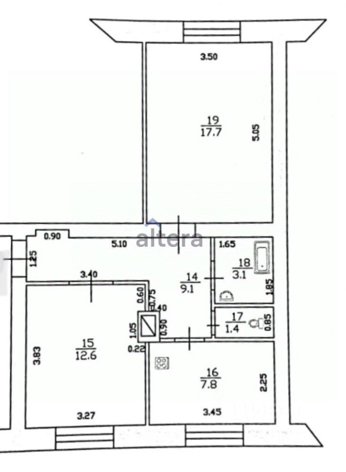 Жилая комната - 17,7 кв.м;