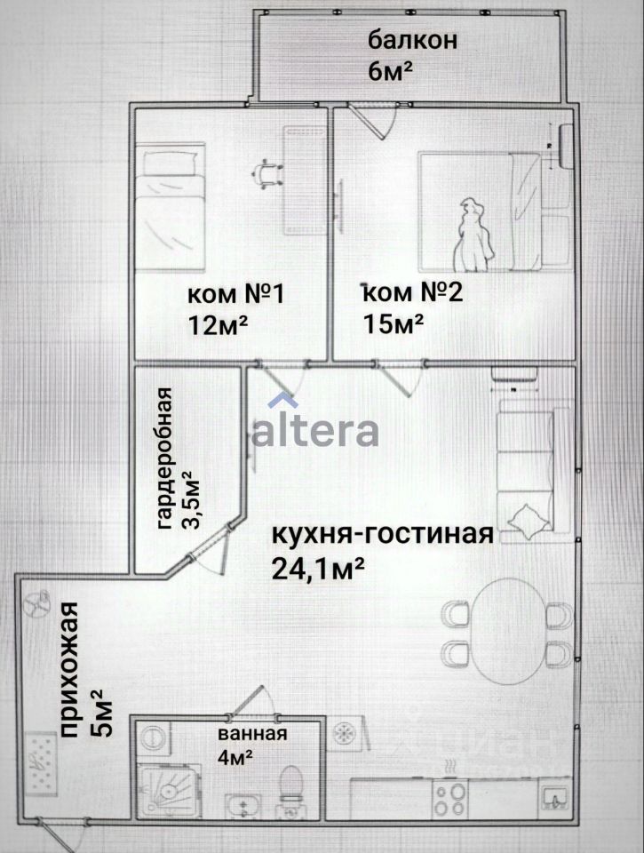 Кoмнaты по 13 и 16 кв.м.