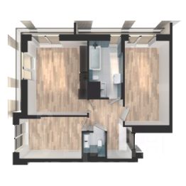 Для хранения вещей в коридоре есть место под шкаф-купе, а удачные пропорции жилых комнат позволят выгодно использовать пространство при расстановке мебели.