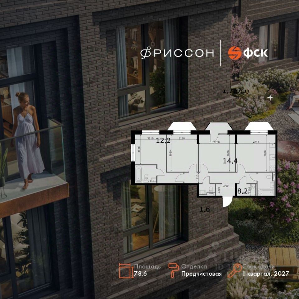 Продаётся 3-к квартира номер 396 общей площадью 78.6 кв.м. на 12-м этаже 14 этажного здания. Предчистовая отделка. Цена с учётом скидки.