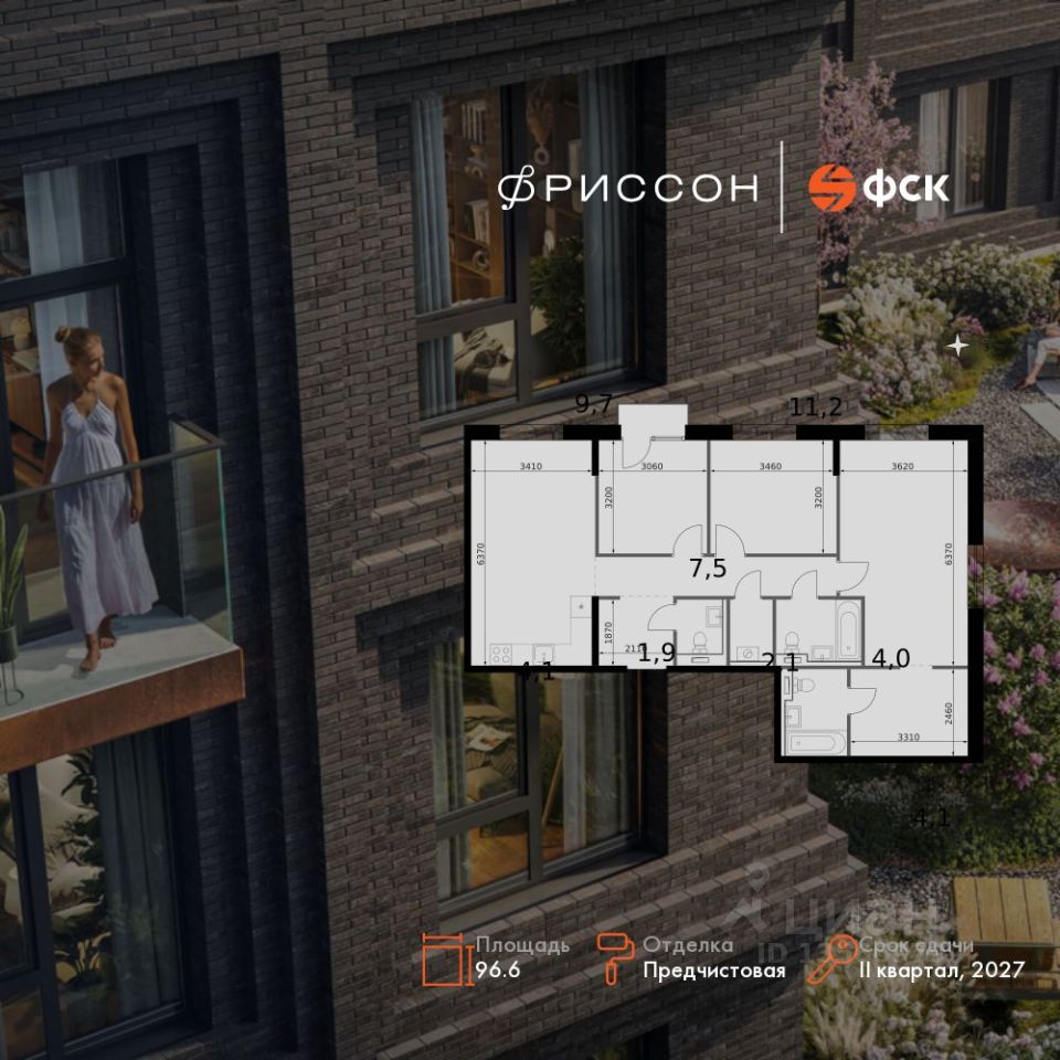 Продаётся 4-к квартира номер 334 общей площадью 96.6 кв.м. на 4-м этаже 14 этажного здания. Предчистовая отделка. Цена с учётом скидки.