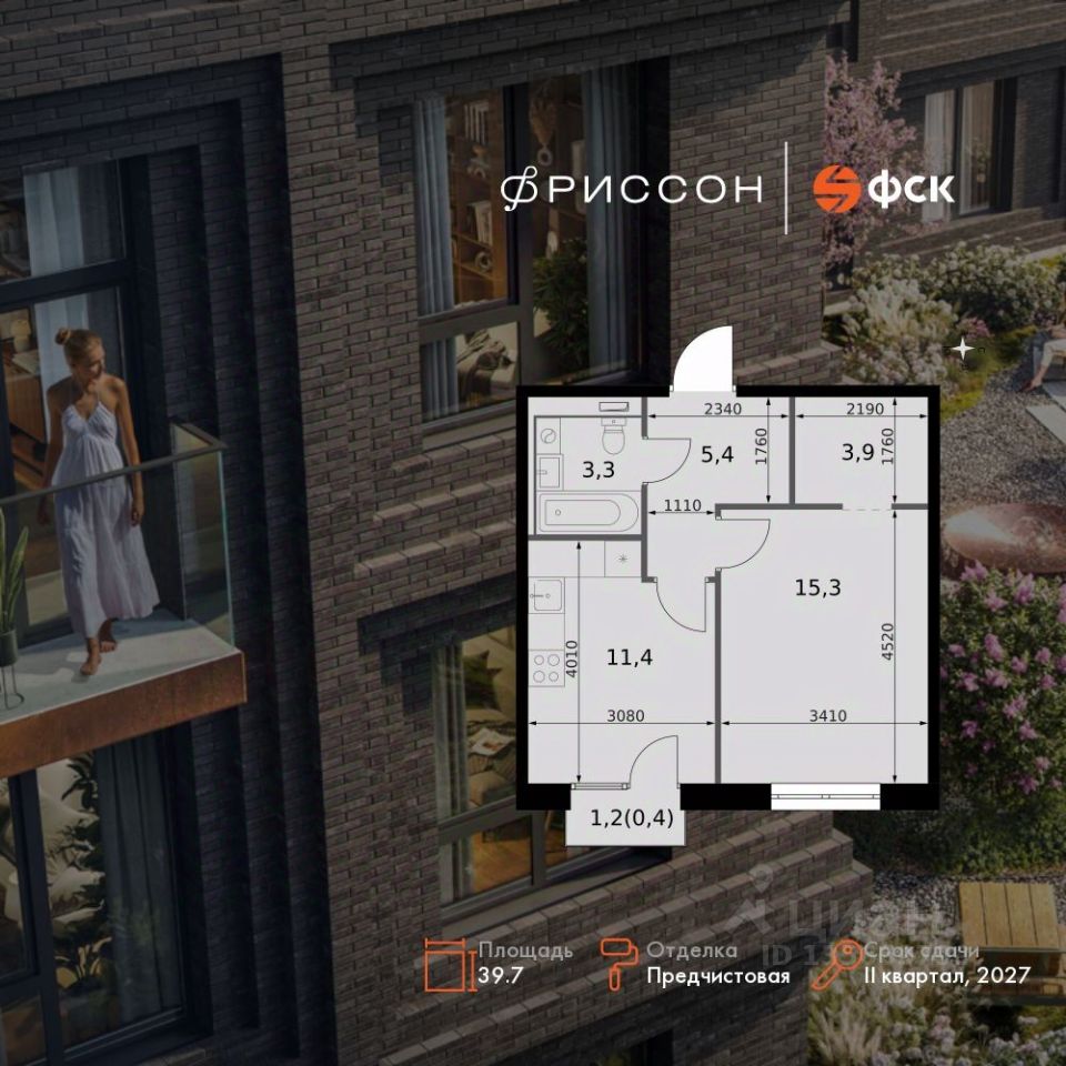 Продаётся 1-к квартира номер 217 общей площадью 39.7 кв.м. на 9-м этаже 19 этажного здания. Предчистовая отделка. Цена с учётом скидки.