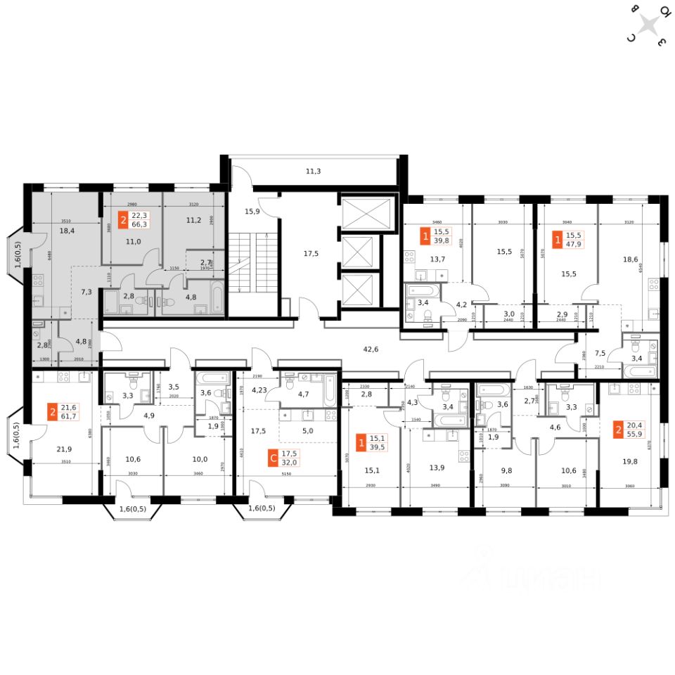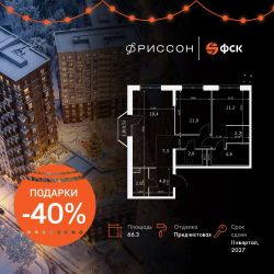 Продаётся 2-к квартира номер 105 общей площадью 66.3 кв.м. на 17-м этаже 20 этажного здания. Отделка Whitebox. Цена с учётом скидки.
