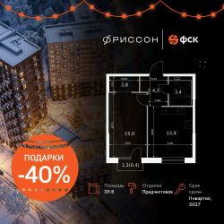 Продаётся 1-к квартира номер 25 общей площадью 39.8 кв.м. на 6-м этаже 20 этажного здания. Предчистовая отделка. Цена с учётом скидки.