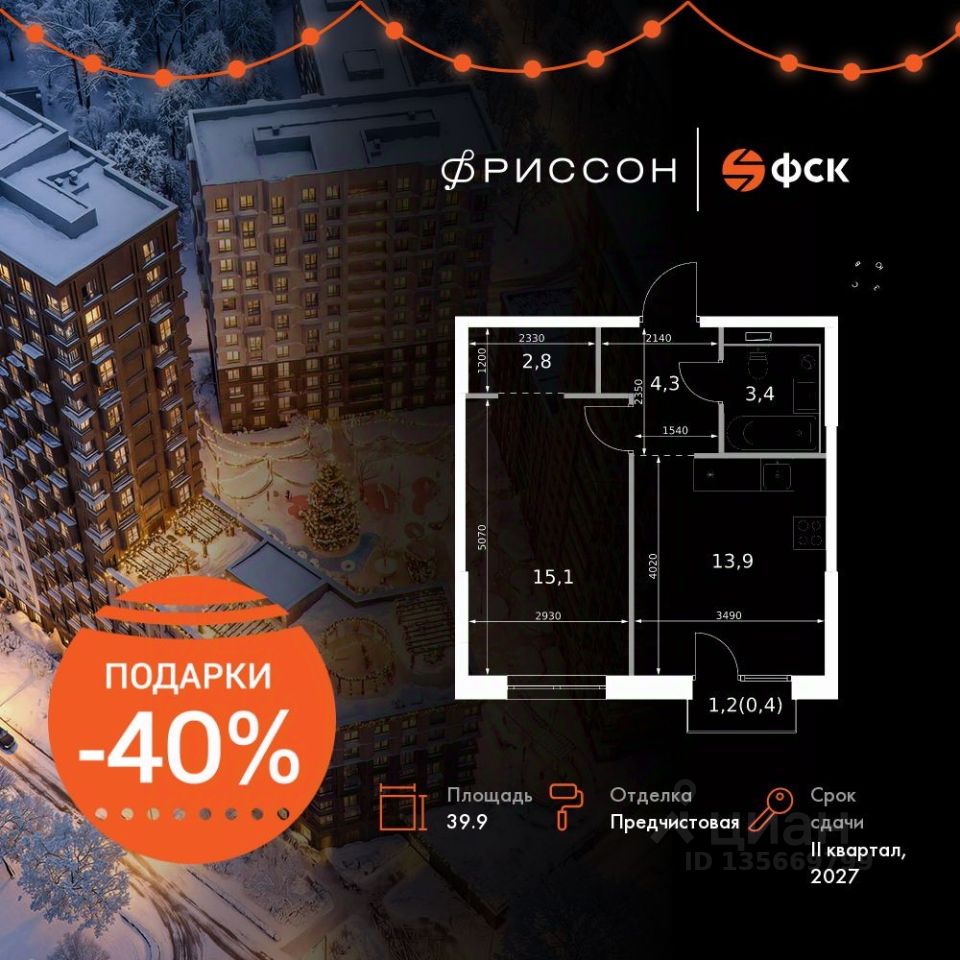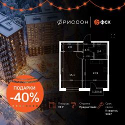 Продаётся 1-к квартира номер 53 общей площадью 39.9 кв.м. на 10-м этаже 20 этажного здания. Предчистовая отделка. Цена с учётом скидки.