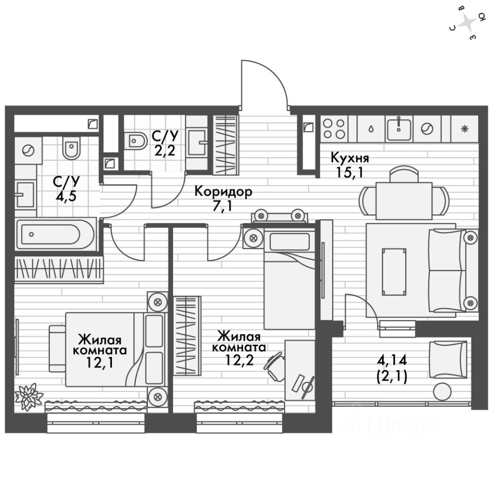 - Линейная планировка - максимальная функциональность и удобство.