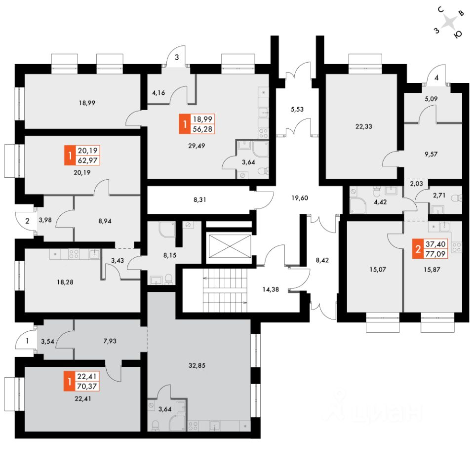 Продаётся 2-к квартира номер 63 общей площадью 69.9 кв.м. на 1-м этаже 4 этажного здания. Предчистовая отделка. Цена с учётом скидки.