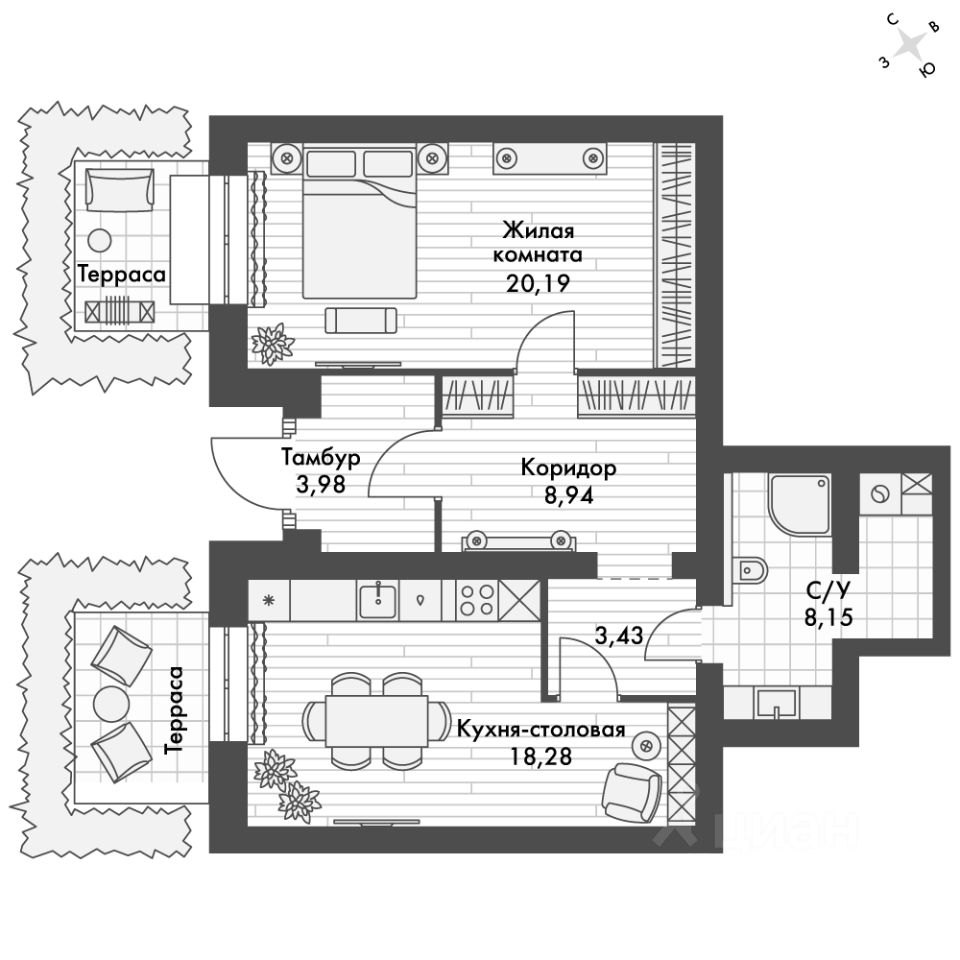 - Линейная планировка - максимальная функциональность и удобство.