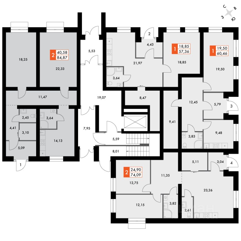 Продаётся 2-к квартира номер 114 общей площадью 84.8 кв.м. на 1-м этаже 4 этажного здания. Предчистовая отделка. Цена с учётом скидки.