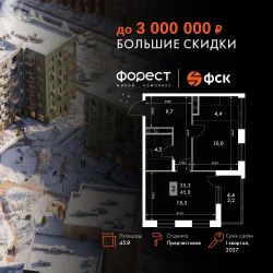 Продаётся 2-к квартира номер 46 общей площадью 45.8 кв.м. на 6-м этаже 7 этажного здания. Предчистовая отделка. Цена с учётом скидки.