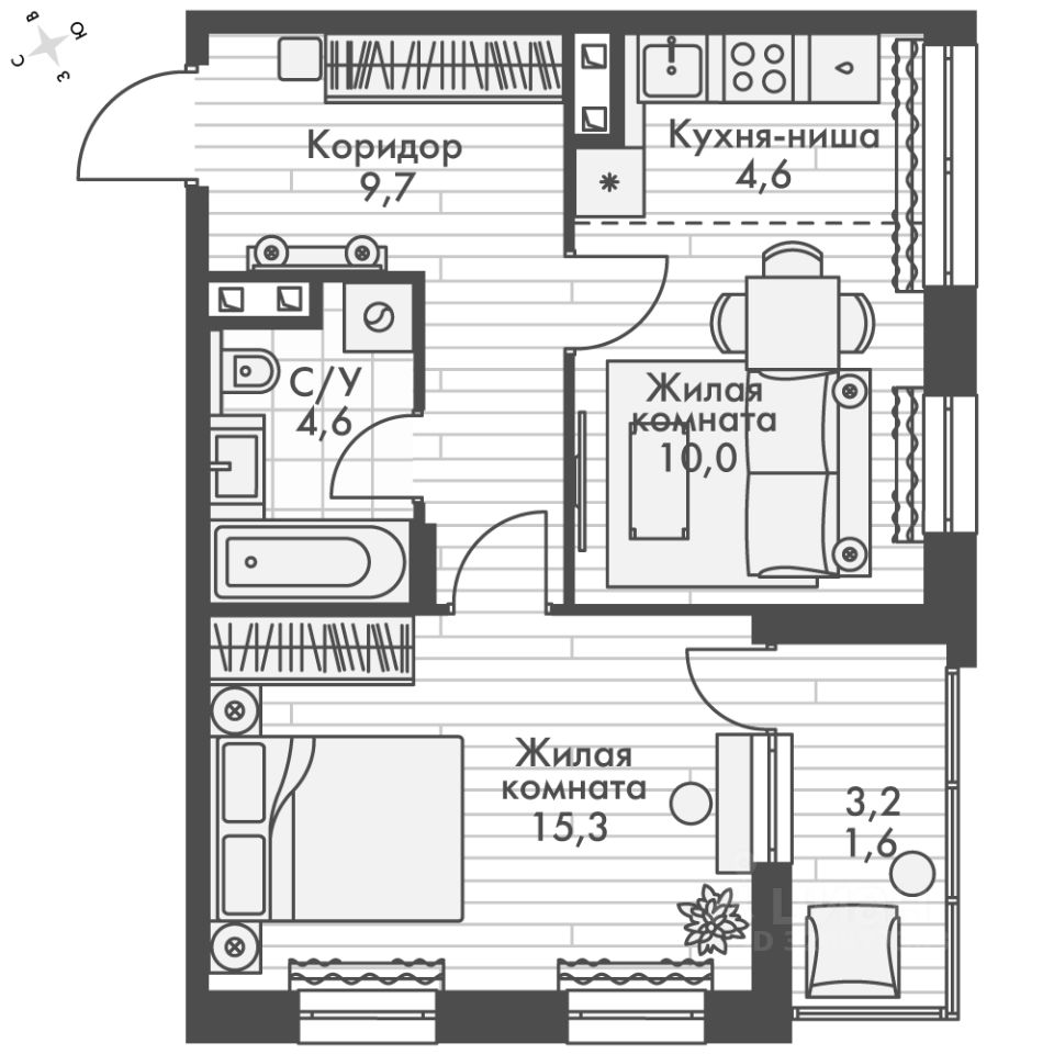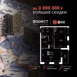 Продаётся 2-к квартира номер 10 общей площадью 45.8 кв.м. на 2-м этаже 7 этажного здания. Предчистовая отделка. Цена с учётом скидки.