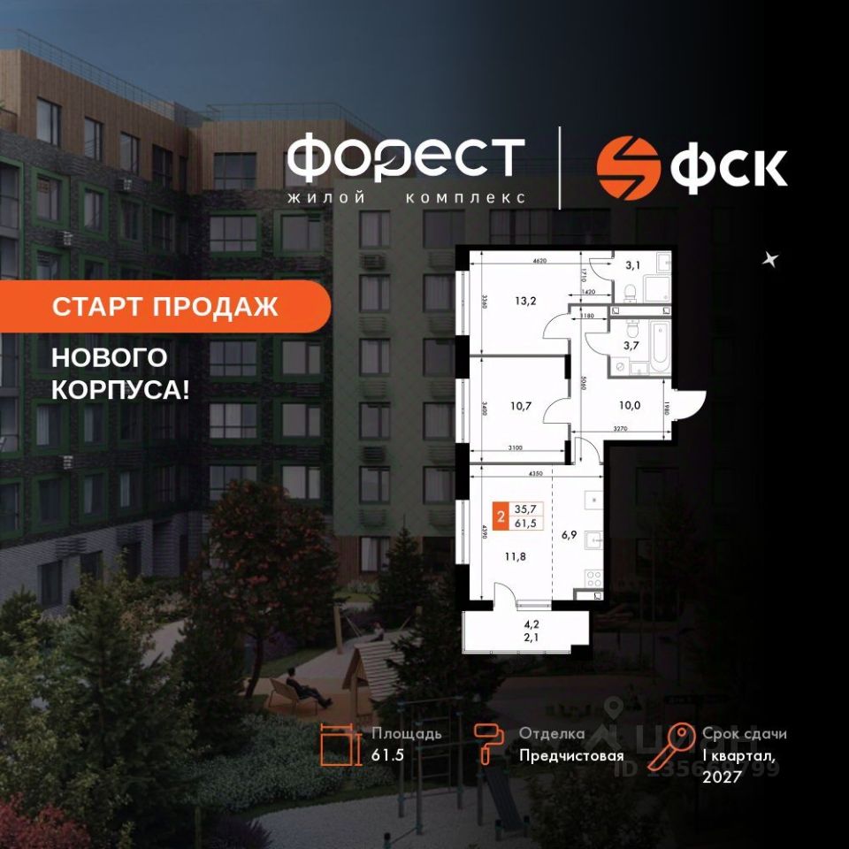 Продаётся 3-к квартира номер 23 общей площадью 61.5 кв.м. на 3-м этаже 7 этажного здания. Предчистовая отделка. Цена с учётом скидки.