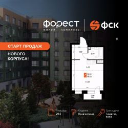 Продаётся квартира-студия номер 6 общей площадью 28.2 кв.м. на 2-м этаже 6 этажного здания. Предчистовая отделка. Цена с учётом скидки.