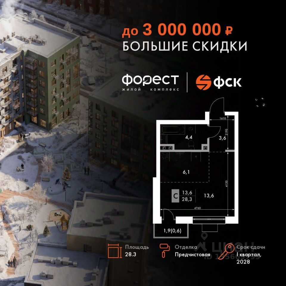 Продаётся 1-к квартира номер 17 общей площадью 28.3 кв.м. на 3-м этаже 5 этажного здания. Отделка Whitebox. Цена с учётом скидки.
