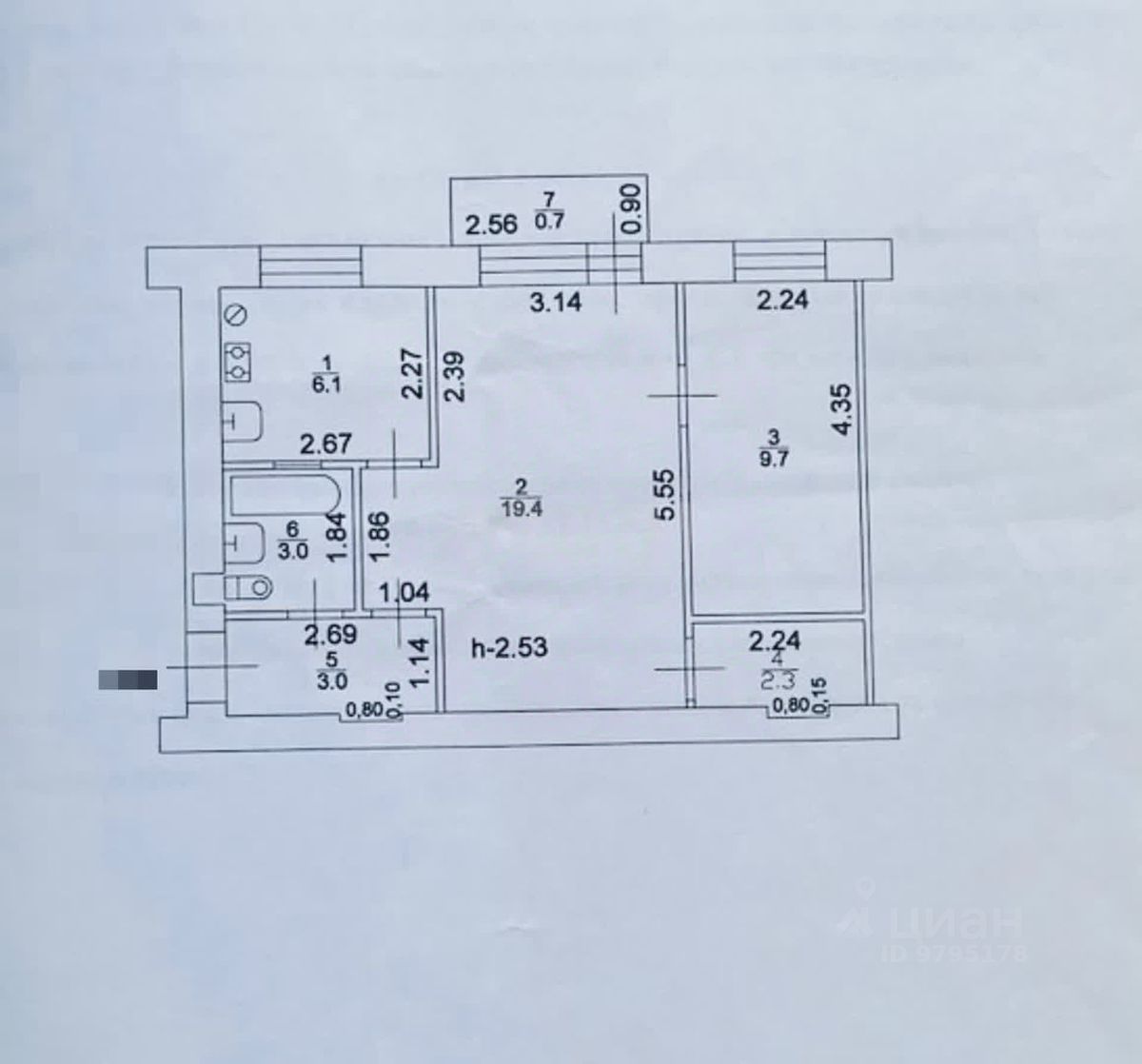 жилая площадь — 28.2 м² , кухня — 6.1 м².