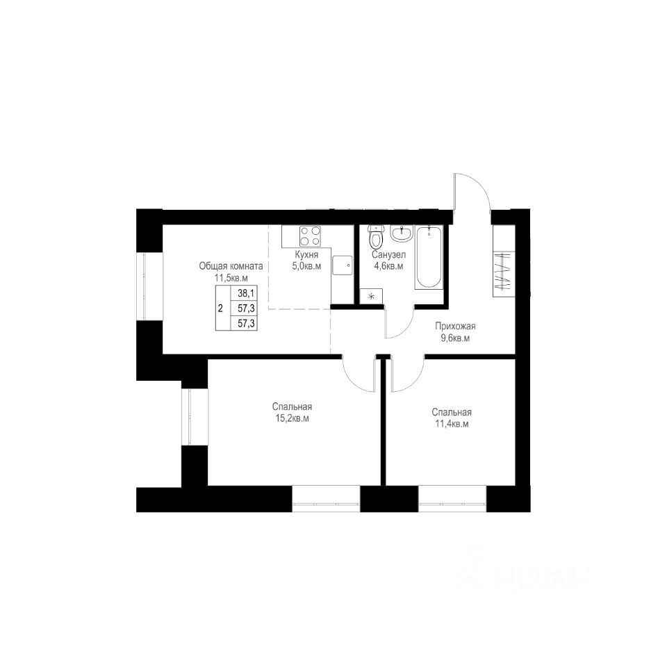 57,3 м²