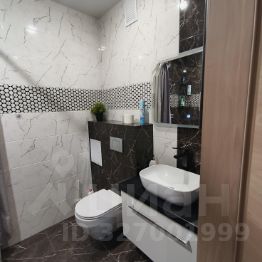 -Санузел в кафеле, дизайнерское решение, с тропическим душем полностью все оборудовано.