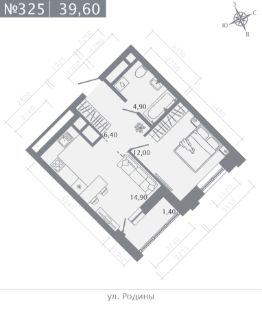 1-комн. квартира, 39,6 м²