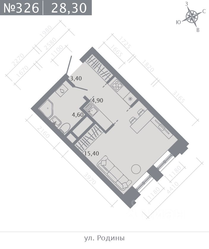 Продаётся студия в строящемся доме (Корпус 1), срок сдачи: II-кв. 2028, общей площадью 28.3 кв.м., на 22 этаже.