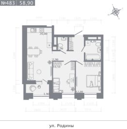 Продаётся 2-комнатная квартира в строящемся доме (Корпус 2), срок сдачи: I-кв. 2029, общей площадью 58.9 кв.м., на 6 этаже.
