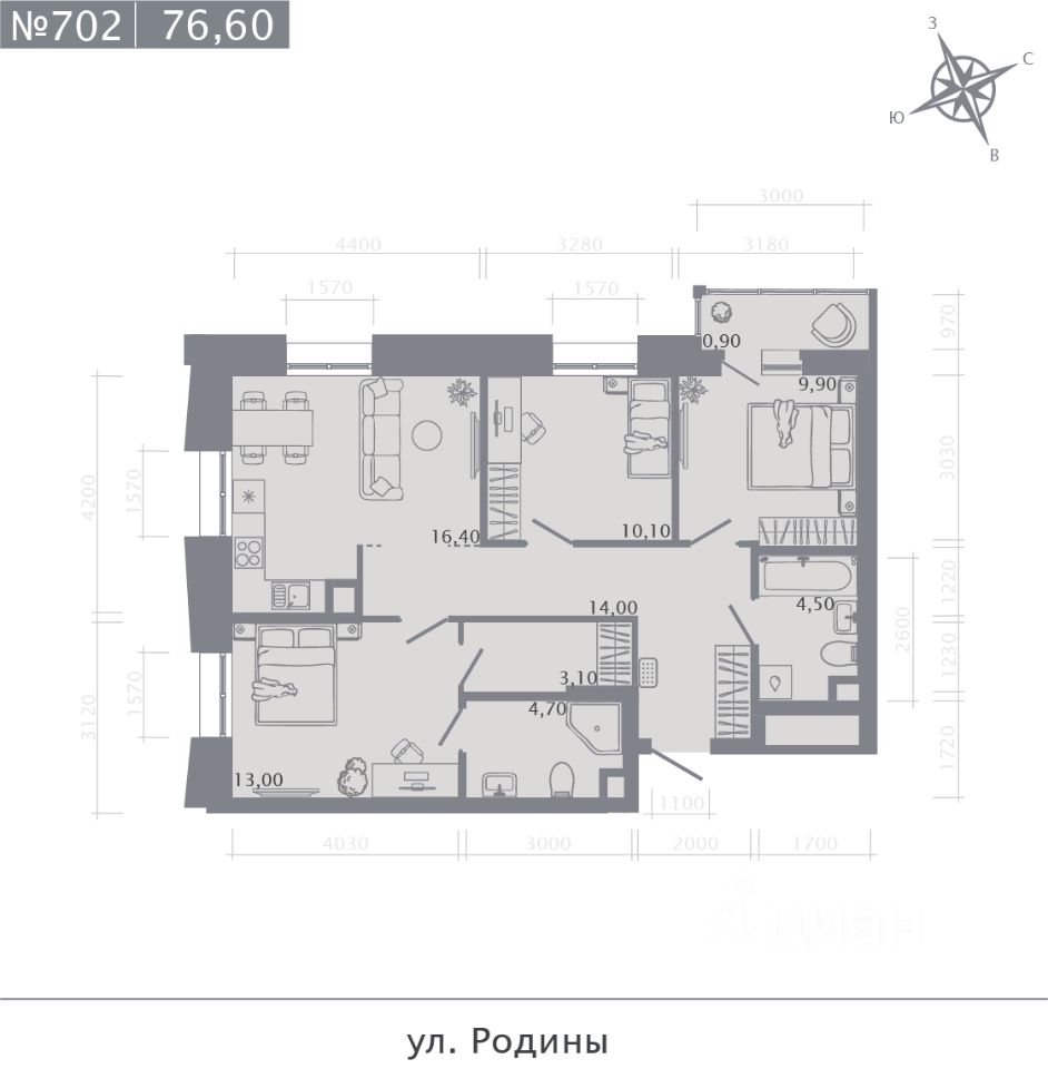 Продаётся 3-комнатная квартира в строящемся доме (Корпус 2), срок сдачи: I-кв. 2029, общей площадью 76.6 кв.м., на 2 этаже.