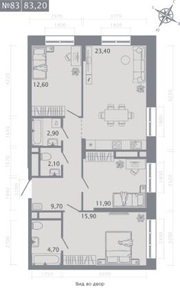 Продаётся 3-комнатная квартира в строящемся доме (Корпус 2), срок сдачи: I-кв. 2029, общей площадью 83.2 кв.м., на 7 этаже.