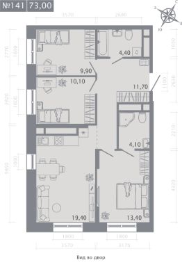 Продаётся 3-комнатная квартира в строящемся доме (Корпус 2), срок сдачи: I-кв. 2029, общей площадью 73 кв.м., на 11 этаже.