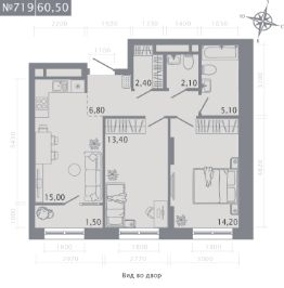 2-комн. квартира, 60,5 м²
