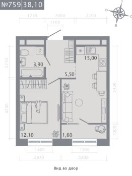Продаётся 1-комнатная квартира в строящемся доме (Корпус 2), срок сдачи: I-кв. 2029, общей площадью 38.1 кв.м., на 3 этаже.