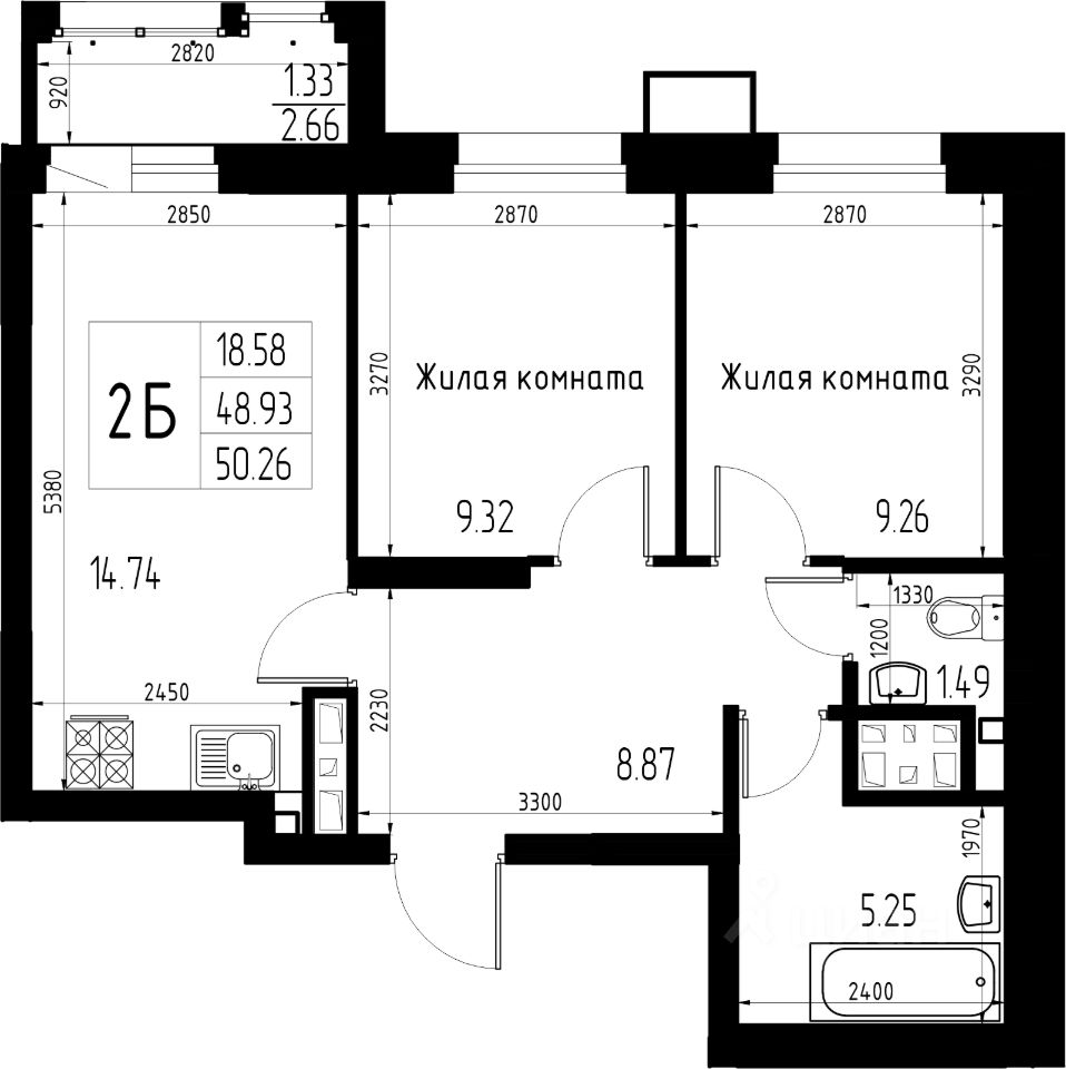 Продаётся 2-комнатная квартира 113 общей площадью 50.26 кв.м., на 12 этаже 13 этажного дома.