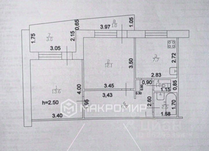 Кухня квадратной формы, достаточно просторная 7.7 кв.м.