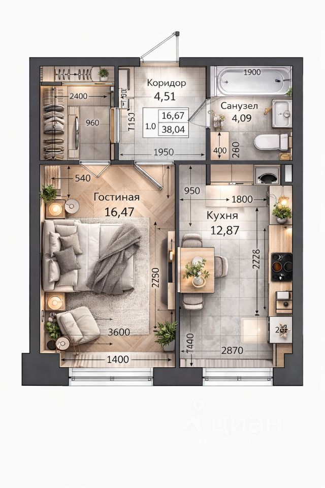 Видовая и абсолютно новая 1-к. квартира с ремонтом, 37,7 м², 25/25 этаж Идеальный вариант для тех, кто ищет "заехать и жить" в новом современном доме 2025 года постройки! Продается светлая и уютная 1-комнатная квартира в Приволжском районе по адресу: ул. Гареева, 103а. Квартира расположена на самом высоком 25-м этаже — это отсутствие соседей сверху, чистый воздух и потрясающие панорамные виды. О квартире и планировке: В квартире выполнен качественный современный ремонт в светлых тонах, в ней еще никто не жил. Все абсолютно новое! Просторная кухня-гостиная (12,97 м²): здесь легко разместится зона отдыха с диваном, как показано на фото. Кухонный гарнитур в ярких тонах уже установлен и укомплектован техникой. Жилая комната (16,47 м²): правильной формы, что позволяет удобно зонировать пространство на спальню и рабочую зону. Санузел (4,09 м²): в современном кафеле "под мрамор", установлена качественная сантехника, ванна и стиральная машина. Прихожая (4,51 м²): с нишей под вместительный шкаф-купе. О доме и локации Дом сдан в 2025 году. Это жилье нового поколения с повышенным уровнем комфорта: Стильное лобби: дизайнерский подъезд с зоной ожидания, мягкими диванами и современными лифтами. Безопасность: закрытая территория, видеонаблюдение, современные детские и спортивные площадки. Инфраструктура: в шаговой доступности лицей 186, детские сады, магазины, аптеки. Удобная транспортная развязка — быстрый выезд на Оренбургский тракт и в центр города. Звоните прямо сейчас, чтобы записаться на просмотр! Арт. 131433921