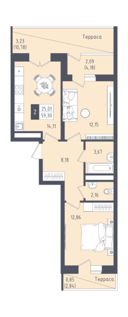 Общая площадь59,3 м²