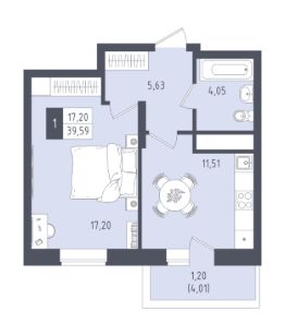 Общая площадь39,59 м²