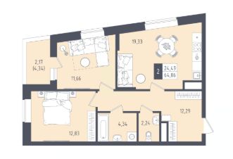 Общая площадь64,86 м²