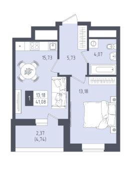 Общая площадь41,08 м²