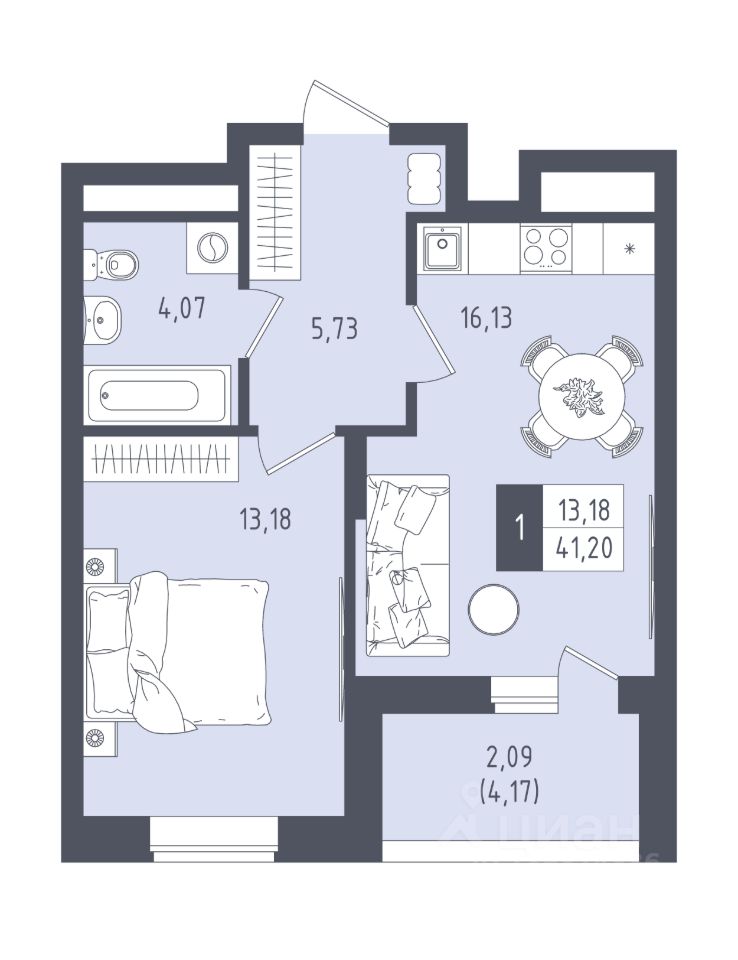 Общая площадь41,2 м²