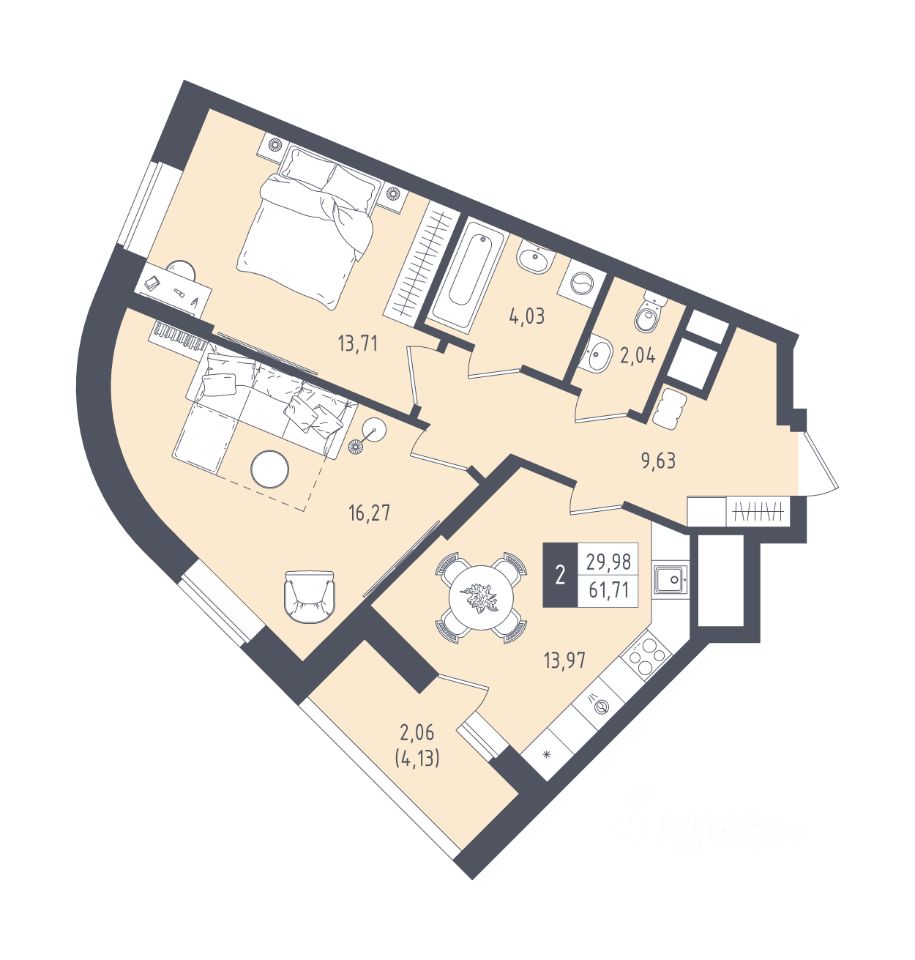 Общая площадь61,71 м²