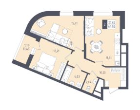 Общая площадь64,53 м²