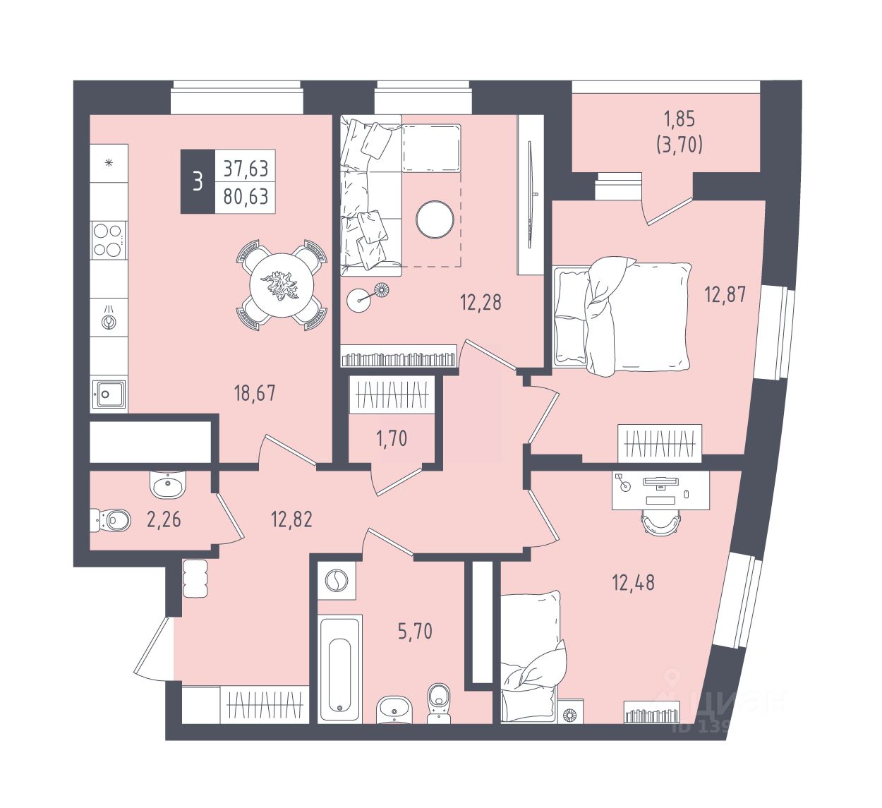 Общая площадь80,63 м²