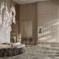 • Натуральные коллекционные материалы в лобби для создания атмосферы премиум-класса.