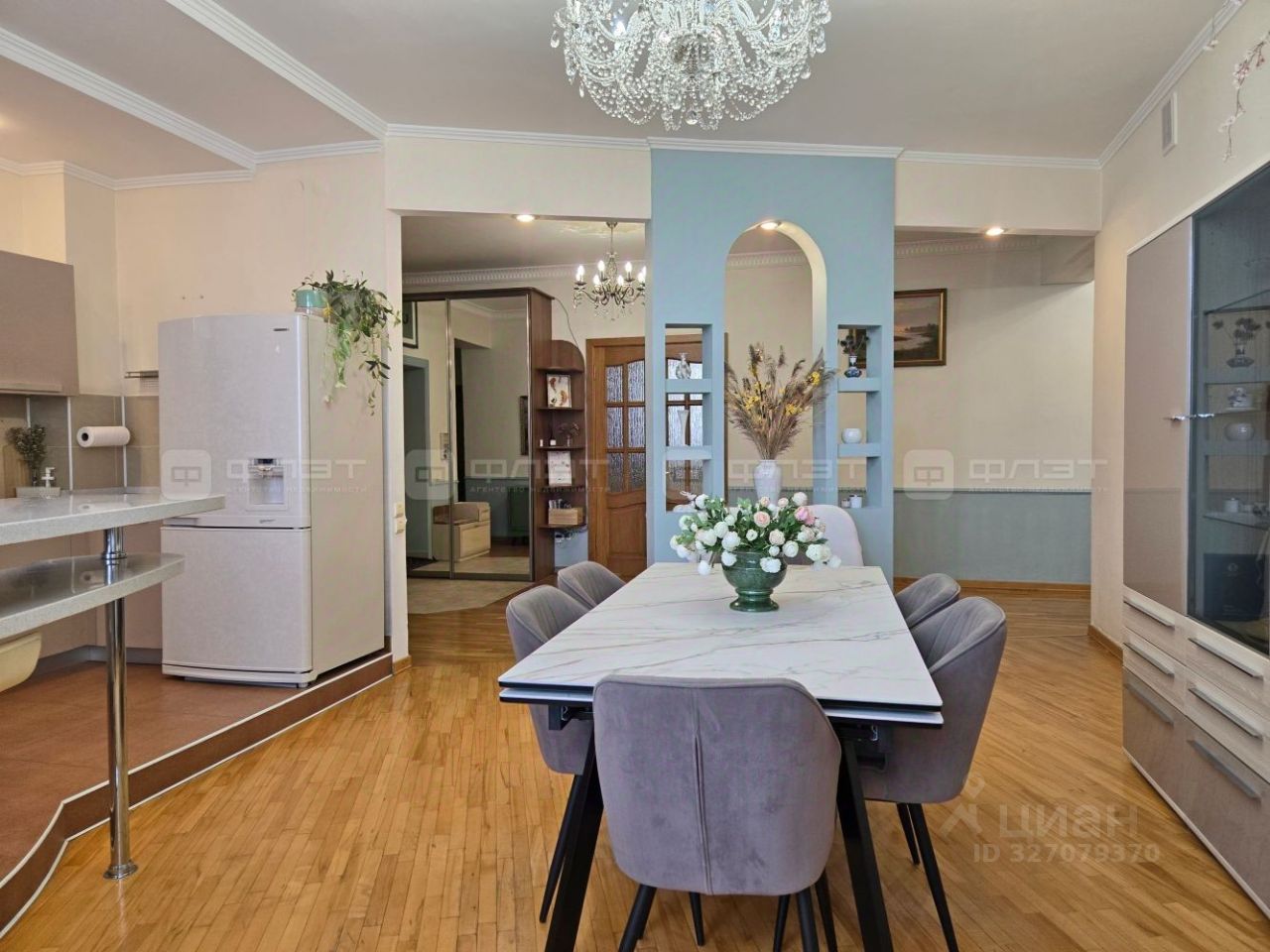 Продается шикарная, просторная, изысканная 4-комнатная квартира площадью 164,2 кв. м. на 4 этаже 9-этажного дома комфорт класса. Двор облагороженный, с детской площадкой, заезд через шлагбаум, есть отдельное парковочное место во дворе.