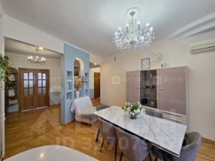 В квартире сделан очень хороший дизайнерский ремонт с использованием дорогих материалов. Все делали с шиком для себя! На полу качественный паркет, в санузлах и на кухне красивый керамогранит, хорошие межкомнатные двери из массива, качественные обои, дорогая мебель и техника, большие окна. Обязательно надо посмотреть вживую!